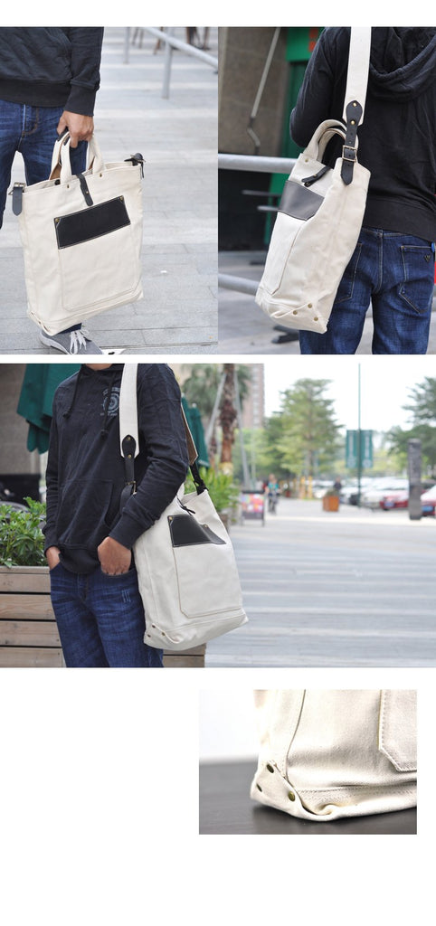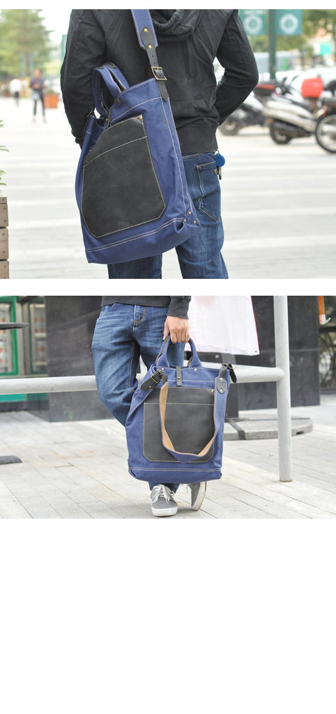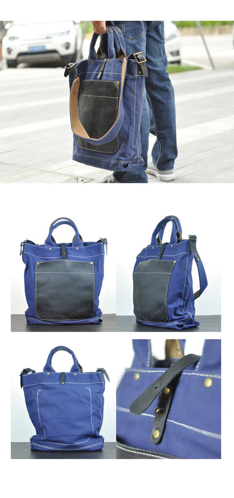 Style: White Canvas Mens Denim Bag Royal Blue Tote Bag Messenger Bag Khaki Travel Bag For Men and Women